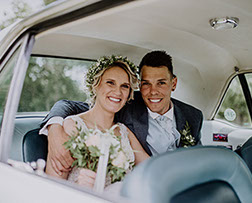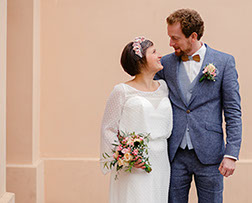 "Wir hatten großes Glück und konnten Mitte Oktober 2020 tatsächlich noch unser wunderbares Hochzeitsfest feiern. Am liebsten würden wir es genau so noch einmal genießen. Nicht zuletzt war es so gelungen durch Deine kompetente und stilsichere Beratung bezüglich des Hochzeitsanzugs, der tatsächlich perfekt zum Kleid der Braut passte. :-) Das Feedback unserer Gäste zu unserer Garderobe war bombastisch."